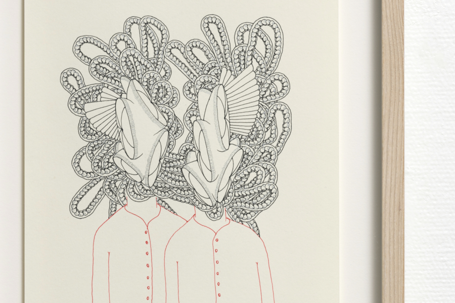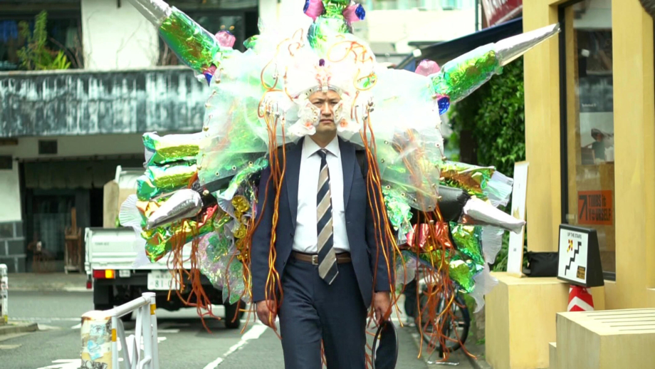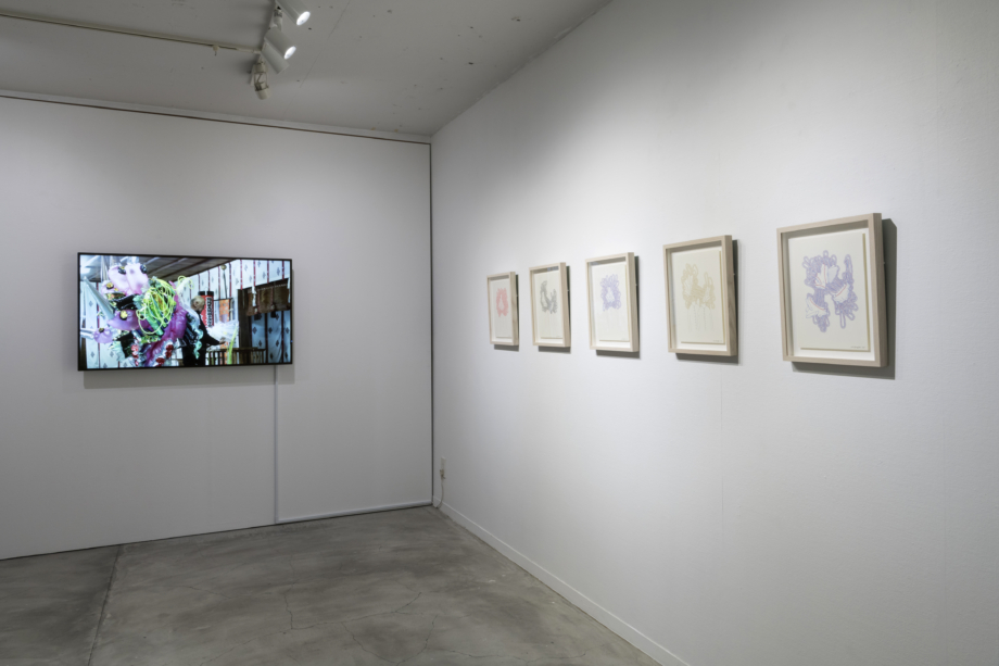 A work that involving the act of "wearing" is also presented alongside a video piece. In the video, a person wearing the work walks through different parts of the city, periodically checking their reflection in mirrors. This video work, in which the they repeatedly check whether their form remains intact, serves as an exploration of the nature of consumption as it moves toward a vanishing point.