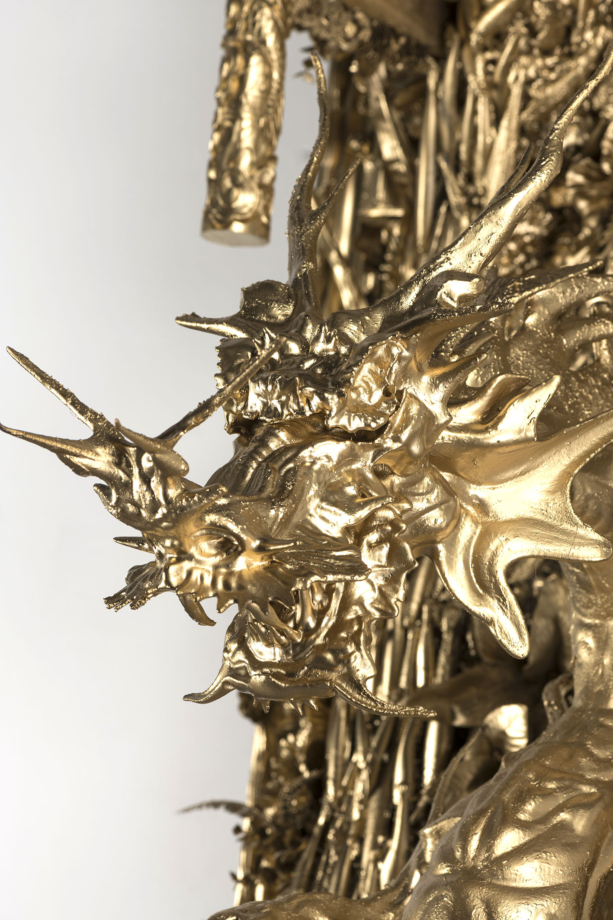 This exhibition will feature 7 to 10 new relief works, ranging in scale from small to large. All are infused with elements of myth, ritual, and intangible cultural memory, unified through the use of gold to spark new layers of imagination. One of the highlights is Tennyo-zo (statue of a celestial maiden), a monumental work over three meters wide, combining everyday objects, ornaments, and mythological motifs. Like remnants of a prayer salvaged from the depths of the sea, it quietly encapsulates time and memory.