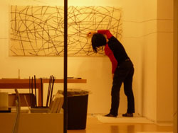 Creative ground of Tokitsu is not limited to the museums and the galleries, but it is extended to any kind of buildings including AKARENGA warehouse in Yokohama, schools, public facilities and residences. She has established the style of drawing by 'line'in recent years, and developped her expression variously, including mounted drawings, lines on the walls, and sometimes the lines on the murals. She draws the lines by inspiration from each space, and the lines strike out space and time. The lines which are given berth by her create vital world and it become a round dance and gives a new perspective.