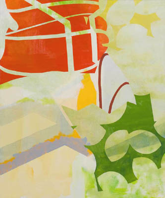 In our memory, we have various sceneries of what we saw and encountered. However, many are not clear enough without concrete shape and colors. When we try to remember them, the shape and colors overlap, and it is somehow close to our memory of what we see in dreams. When we see Aki Yamaoto's work, we may feel the similarlity of those seneries in our mind. Space are being cut out or sometimes filled in by her colors, and they overlap, and cross with each other. The overlaps of her forms her works in past tended to show clarity and transparency, but recently they are becoming to form a definite shape. The artist is recently interested in shadows. The seen objects form certain shapes and at the same time they melt within certain shapes of shadows. The objects which do exist and those which are merely shadows overlap and meet on the canvas. And above all, the artist's activity to conbine all she saw on one picture plane is like playing a puzzle with viewers.