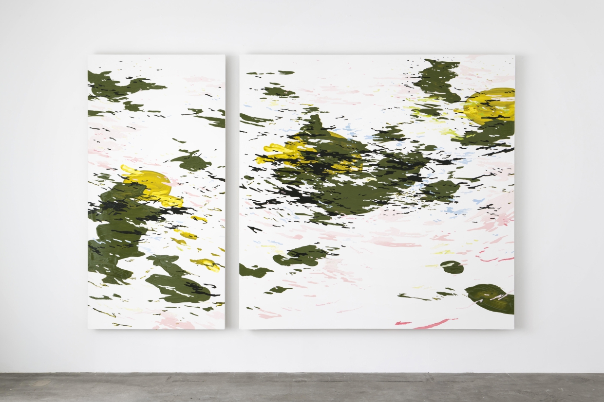 きっと、いくつかの要因があり、その確かなところはわからない。ただ、彼女は、画面に浮かび上がるイメージと、絵具と言う物質の間(あわい)である絵画の世界で、さらに、虚像と実像の、より細やかなあわいを入れ込もうとしているのではないかと、私なりには推測する。画面全体に広がるマットで白い平坦なレイヤーは、絵具の厚みであり、具象性の一切ないイメージである。ただそこに、いくつかの色彩が、それも艶やかな質感をもって重ねられることで、現実の風景と絵画との関係、そして彼女自身の絵画のありようを、改めて進化させようとしているのだろう。