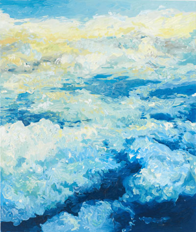 それから1年半、私たちは再び北城貴子の新作を目にすることが出来ます。2006年から森や花を描いてきた北城は雪、海、雲など、描く対象を一気に広げています。そして筆致、マチエール感がこの作家にとってより重要な要素になってきています。雪の森、夏の植物などが、それぞれのモチーフに合わせ、様々な筆遣いによって描かれ、そこに存在している密度をもった大気を感じさせます。