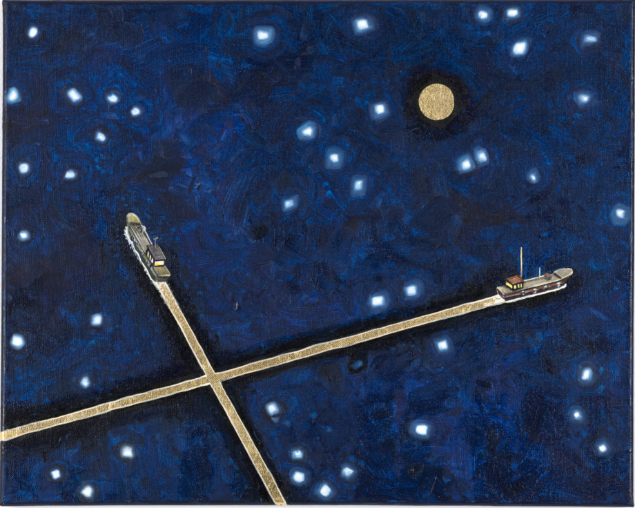 《Two Ships under the Moon light 1》2018 キャンバスに油彩 40 x 51cm