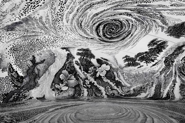 2022年夏、屏東市シーサイドギャラリーで台湾で初めての個展《The Dream of a Sleeping World》を開催。「Sleeping Dreams」、「Darkness and Light」、「Isolation」の3つのエリアに分かれた大規模な360度ぐるりと囲まれる形で、マーカーペンを使って球体の内面に幻想的な白と黒の空間を描きだしました。