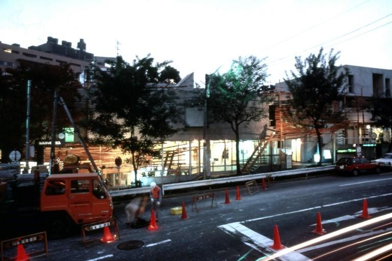 川俣正が代官山ヒルサイドテラスで「工事中」と題するインスタレーションをおこなったのは1984年のこと。建物の改修工事にともない、外壁を木材でおおっていく作品だったが、途中でテナントから「人が寄りつかなくなる」とクレームがつき、中止を余儀なくされた。ところが中止直前、写真週刊誌に記事が出て人がたくさん集まってきたため、テナントは手のひらを返すように続けてほしいと願ったそうだ。