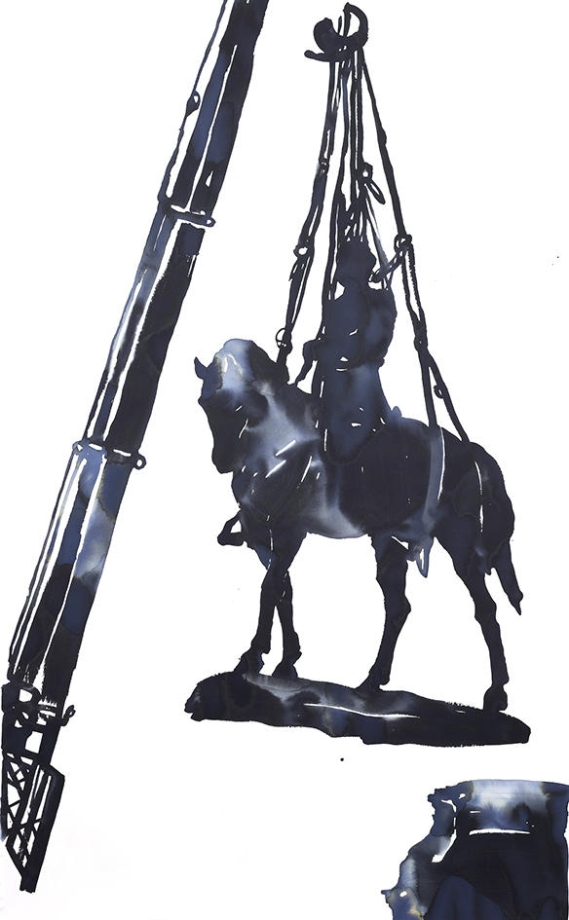 私の作品において、人物は常に注目の中心にあります。武力紛争の際、人間の姿はしばしば人格のない記号的な存在となります。人間の身体は、紛争に加担し、立ちすくみ、あるいは足元から崩れることで、純粋に機能となっていきます。私の人物は、あるときは身体的な存在によってあるときは不在または徐々に消えていく存在として定義されます。この二つのシリーズは、人物の二つの状態を例示しています。「Women in Black 」は、その存在によって抗議を示すものであり、リー将軍の記念碑は物理的に不在にされています。