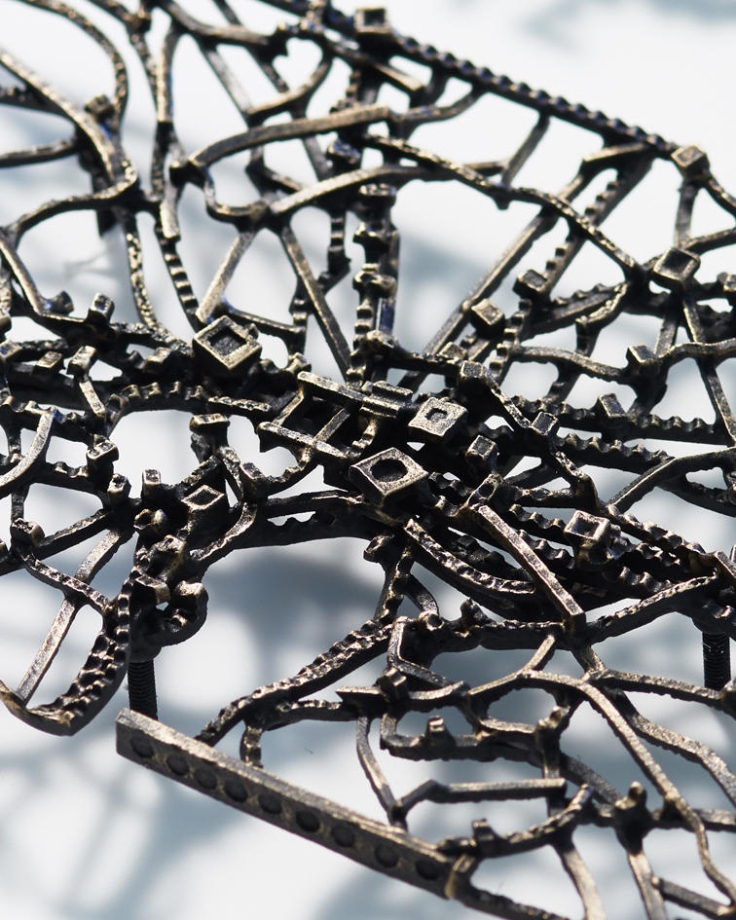 久野彩子が駆使する鋳金技法は、日本の伝統技術である。長く師について技術を習得しなければならない仕事は、現代の日本では失われつつあるが、他方で、土地に根付いた文化を知る手がかりとなることから見直しもされている。久野が使うロスト・ワックスの手法は、ロウの原型を金属に置き換えるために間違いのない慎重な作業が求められる仕事だ。手間を厭わない職人気質は、礼儀作法、品位とともに日本の伝統工芸では死活的に重要な資質である。久野の仕事は、先人の知見を「もともとそこにあったもの」のようにやすやすと扱っているようにみえる。工芸領域が醸し出す神話の空気を纏いながら、新しい可能性を開くポテンシャルを持った独自の制作方法といえるだろう。