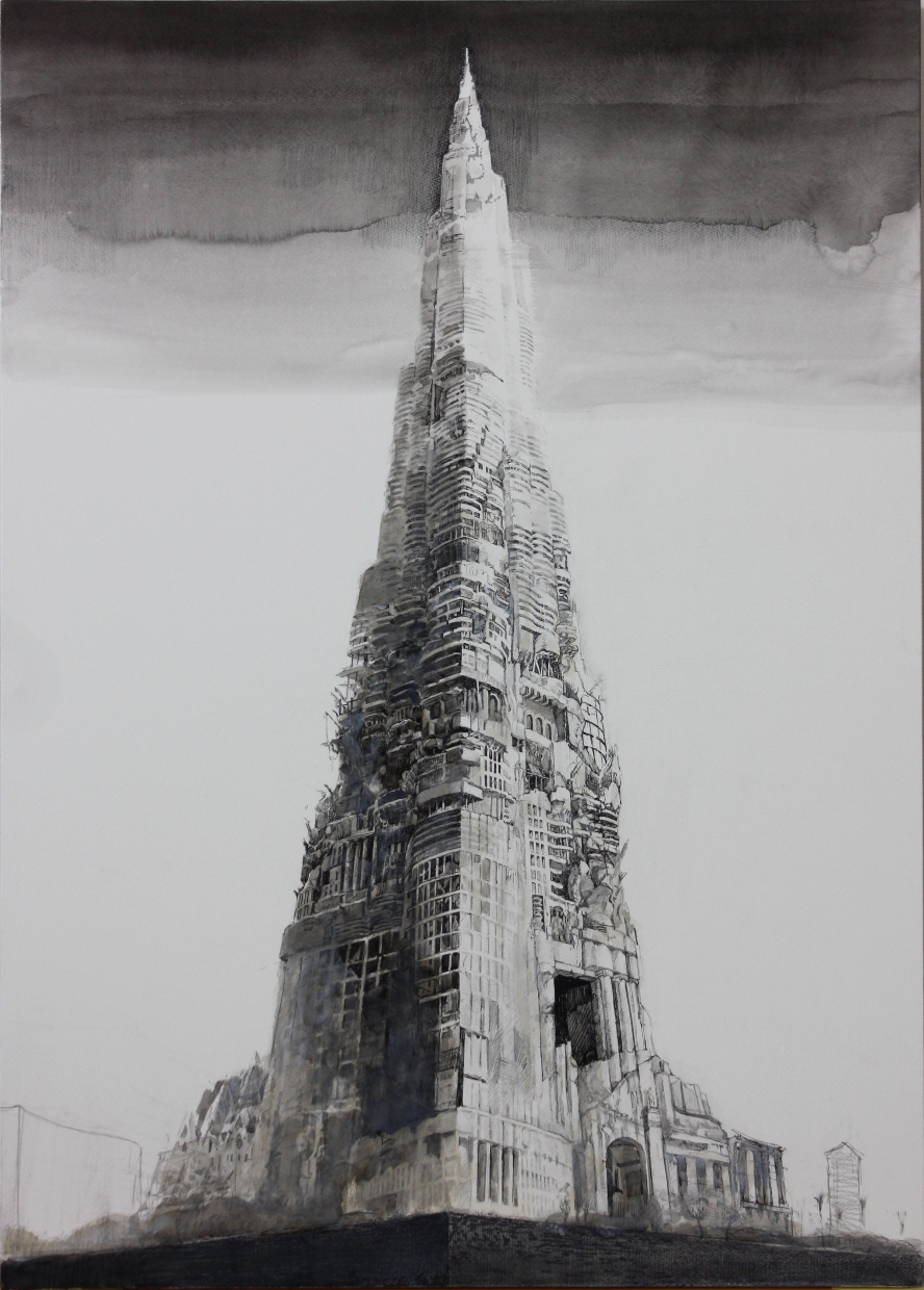 ジョヴァンニ・バッティスタ・ピラネージの廃墟には人影が見出されるが、ここに人影はまったくない。死体さえも見あたらない。だから、死体をあさる鴉や野犬のすがたもない。ここには生きものの気配さえ感じられない。にもかかわらず、なまなましく感じられるのは、建物や街路が、あたかもアンモナイトの化石のように有機体の記憶を宿しているからだ。