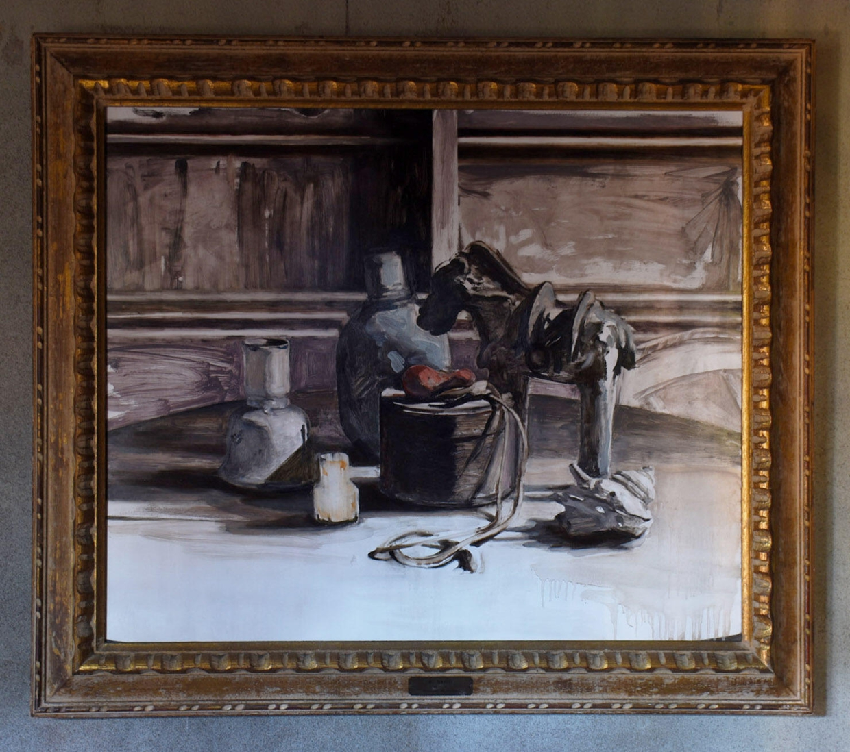 今回は、絵画に焦点をおいた展示となりますが、瀬戸内で使われた家具や道具など実際のモチーフも同じ展示室内に配置されます。これらの物や絵画は冨安が瀬戸内の朽ちかけた空き家の中で鑑賞者に向けて仕掛けたもう一つの世界に通じる入り口でした。今回ギャラリーにて再構成された瀬戸内の断片はニュートラルなホワイトキューブという異なる環境の中で何をどのように私たちに語り掛けるでしょうか?