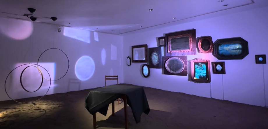 いくつかの作品では、絵画が動き始め、動く表面となり、絶え間なく変化する不安定なレイヤーを提示する。さらに、絵画と鏡の間に一種の混乱がもたらされる。絵画の固定された表面は生き生きと動き出すのに、鏡に映る反射は止まったままであるからだ。色とりどりの虹色の背後にあるのは、まさにこれらのイメージが映し出す海の表面である。まるで海面がその深みから切り離され、動く絵画になったかのようだ。ただし動く水面には奥行きはなく、作家のパリンプセスト・インスタレーションにおけるレイヤーのひとつと化している。