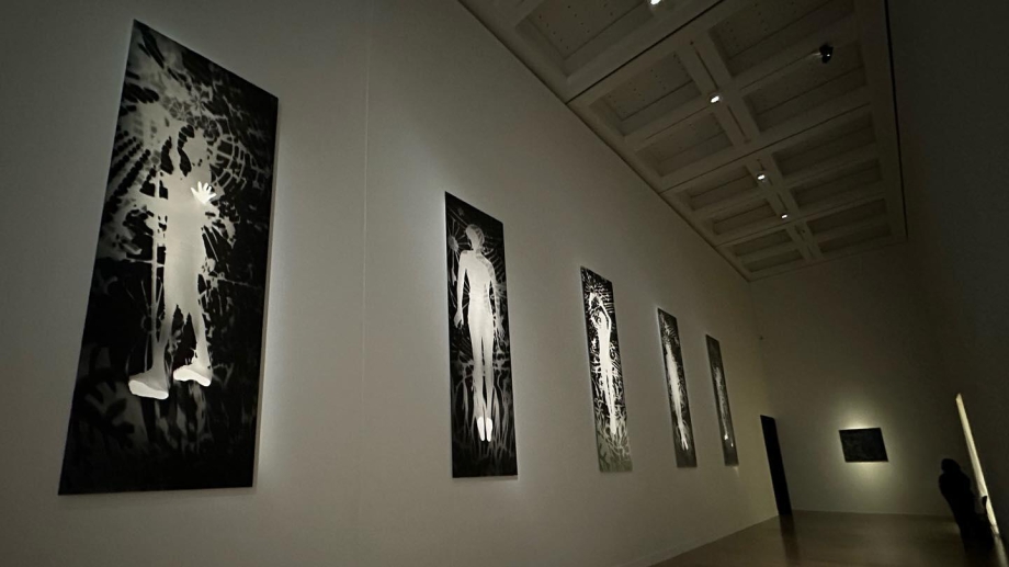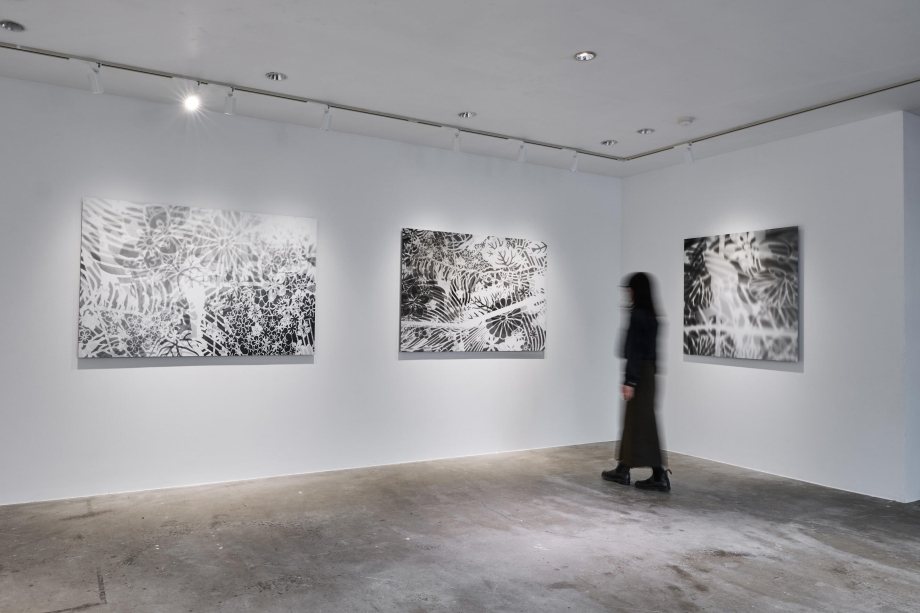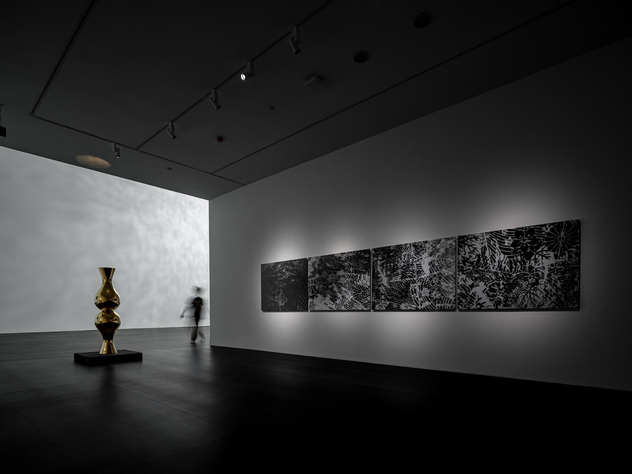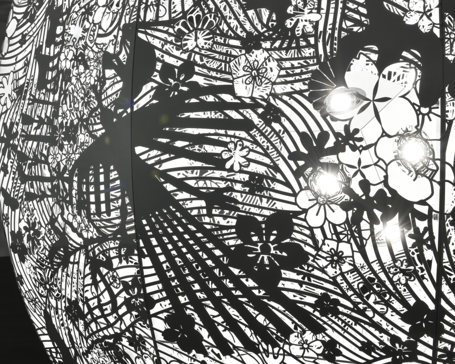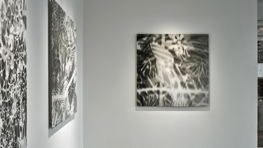 2016年に初めて発表され、現在、国立新美術館でも展示されている《Gravity and Grace》は、透かし彫りの大きな壺と、そこから放たれる強烈な光と影を含み込む大型のインスタレーションである。壺には、人が古来、装飾とともに生きてきたことを暗示するかのように、世界の縮図としての文様が施されている。今回展示されているフォトグラムのシリーズ〈moment〉は、この文様を介して現れた光と影の戯れを、印画紙に焼き付けたものである。