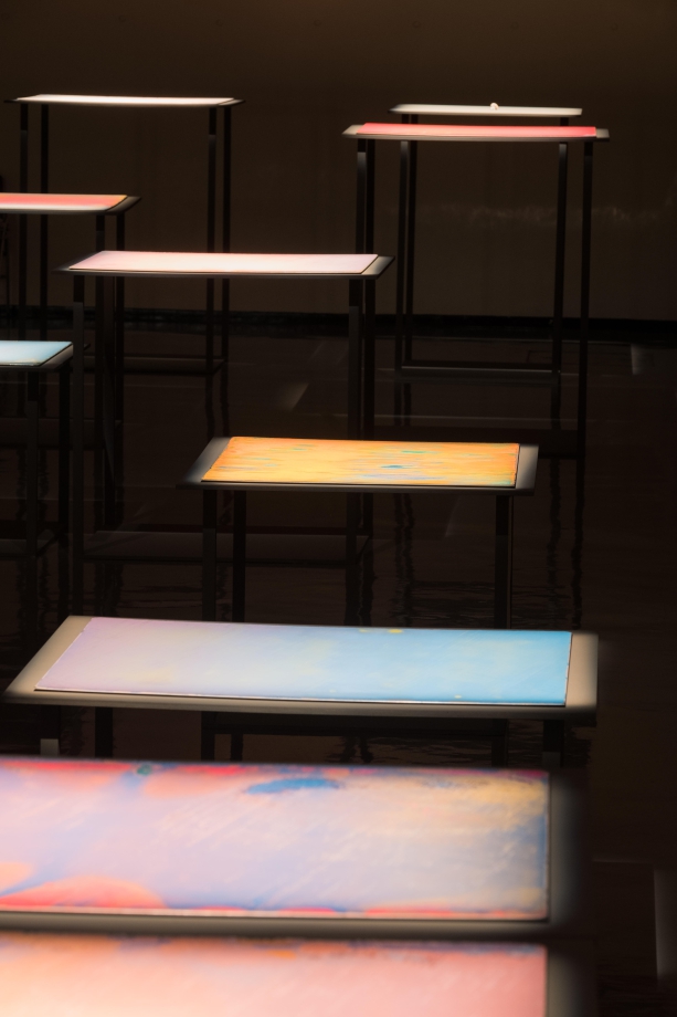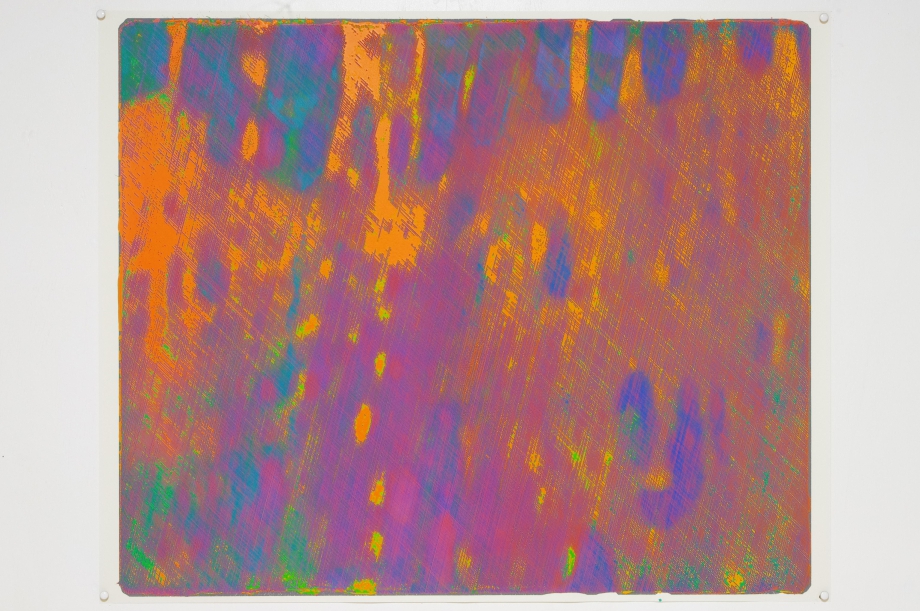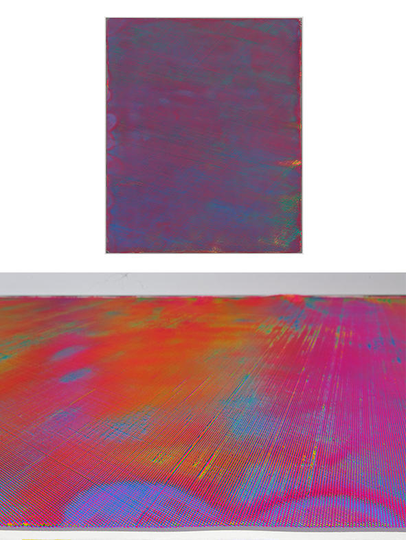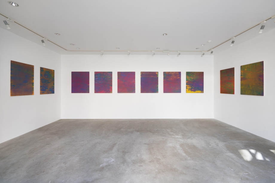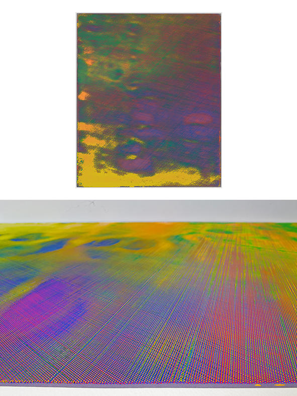 小野耕石(1979年、岡山県生まれ)は、シルクスクリーンの技法を駆使して生み出される無数のインクの柱が立ち並ぶ平面作品 Hundred Layers of Colors シリーズで知られる。手書きしたドットを版に起こし、それを単色で色を変えながら100回も丹念に刷り重ねることで高さ数ミリのインクの柱が立ち並んだ状態が生み出される。無数のインクの柱の集合体が見る側の位置の変化にともない色を妖しげに変え、魅惑的な視覚体験をもたらす。そして何よりも物理的な突起物が密集する様が触覚的で、作家の言うところの「ぞわぞわする」感覚を誘う。 きっかけはある夏の夜、アトリエに飛び込んだ蛾をみて、その鱗粉の質感と名状しがたい色合いを、当時取り組んでいた版画で再現できないか、ということだった。規則的に描いた無機的なドットを、版を重ねることでインクの柱として立ち上がらせ、画面全体はヴェルベットのような質感といわく言い難い色合いを実現した。紙によって、あるいは刷るときの温湿度に影響されるインクの粘度によって生まれる微妙な変化が、画面としては刷ムラやズレといった個体差となって作品ごとの表情を生み出していた。シルクスクリーンという複製技術を用いて、その特性を限界まで強調した結果、版を重ねるごとに生じるわずかな差異によって逆説的にに一点ものの個別の作品を生み出している点がユニークだ。約10年かけて探求されてきた小野のこの技法は、作品「Hundred Layers of Colors」(750×900mm×15枚)が2015年のVOCA賞を受賞するという形で、その独自性が評価された。 VOCA受賞後、初めての本格的な個展となる本展では、Hundred Layers of Colors シリーズ最新作を展示する。小野にとって新たなステージへと脱皮をはかるチャレンジとなった。小野は同じ技法をこれまでと同じように繰り返し用いながら、まったくこれまでとは異なる印象の作品を完成させている。画面に現れる色彩はより鮮やかになり刷りムラなどからくるモアレのような現象のバランスからも平面作品としてみるときの印象はより強いものとなった。使用するインクの色の数、色の層の順番や刷り重ねる回数などの工夫から、これまででは見えてこなかった色やその鮮やかさを獲得した。計り知れない試行錯誤の繰り返しの果てに作家がたどりついた創作の新たな地平とでもいうべきかもしれない。改めて版によって色を重ねるということと、それを見せられるようになったことで、小野のさらなる飛躍に期待が高まる。