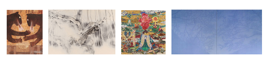 いわゆる「洋画」「日本画」の枠を超え、真に「日本の絵画」と呼ぶに値する4名の作家が創り出す世界は、豪華なもの・ダイナミックなもの・荒々しいものとそれに対峙する、精緻なもの・小さなもの・濃やかのものの両極への志向があり、自由闊達で世界に開かれた精神を持っています。今回の展示は、4人の作家の過去の作品と一部最新作を含む一連の作品をタイムリーに紹介するものです。「絵画」のあり方が問われている現代、これらの作品は絵の根源的な姿を示唆してくれるものと思います。皆様のご来場をお待ちしております。