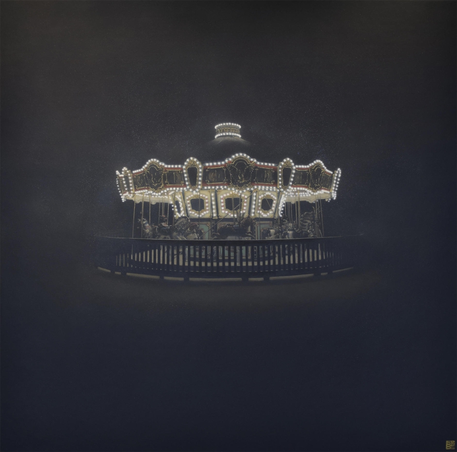 もちろん、見ることは認識だけに結びつく訳ではない。肌への感触を感じるようにざらざらした物の表面の表情を感じるし、心臓の鼓動を感じるように規則正しく並んだ建築物からもリズムを感じる。つまり、認識から切り離され自律した「呼吸する景色」のようなものに阪本は目を向けているのではないか。色彩は最小限に抑制されていているのに、余剰としての色彩の気配もある。描かれた景色は、必ずしも時間と空間の秩序にのみ納まるものではなく、そのものがひっそりと呼吸しているような時空なのだ。そして、景色として切り取られた場所を見ているだけなのに、そこに観者(あなた)だけがいて、そして極めて素朴に、私も「この景色のなかで一緒に呼吸している」と思えてくる、そんな絵画なのだ。