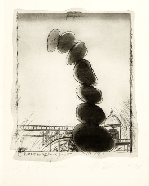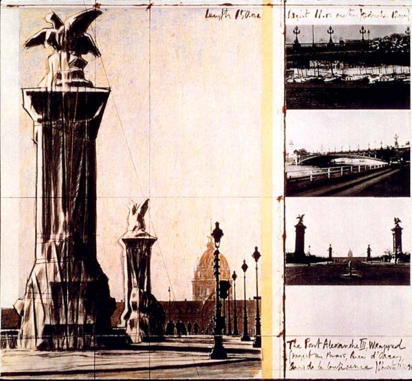 クリスト(1935-2020)はソフィアの美術学校とウィーン美術アカデミーで学んだ後、1958年パリに移住し、初期は肖像画と缶や工業製品などを布で梱包する作品を手がけました。ジャンヌ=クロード(1935-2009)はチュニス大学でラテン語と哲学を専攻、1958年にパリでクリストに出会い、2人で公共空間での活動を開始します。中原佑介は著書『クリスト―神話なき芸術の神話』で、現代芸術がかつての宗教的・伝統的な「神話」を失った後、いかにして社会や自然と新たな関係を築くかを論じました。1991年に日本の茨城とカリフォルニアで行われた《アンブレラプロジェクト》の開催にアートフロントギャラリーが関わり、現在でもクリストのドローイング、リトグラフなどを扱っています。