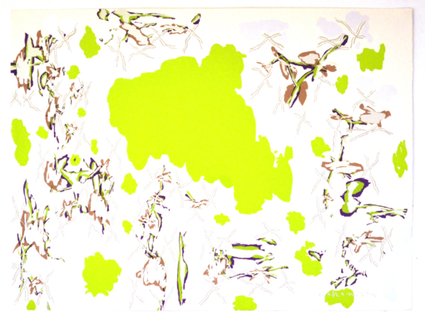 磯辺行久 (1936-) は1950年代から版画を制作し、1960年代にはいるとワッペン型を反復したレリーフを制作して一躍注目を集めました。1965年にニューヨークに渡ってからエコロジカル・プランニングを学び、その作風は大きく転換してきます。帰国後、地域環境を形成している気象・地質・地形・水・土壌・植物、歴史文化等を資源として位置づけた地域計画を調査・研究を行ってきました。2000年に始まる「大地の芸術祭」との関わりは深く妻有の大地で新作の発表を続けていますが、中原佑介は2000年、2003年、2006年と芸術祭を訪ね、磯辺作品に接しています。信濃川の昔の姿を黄色いポールで表現した《川はどこへいった》について、「ひろがる緑の田圃とそれに拮抗するように直立する無数の黄色い棒の、色鮮やかなコントラスト」が印象的で、「測量術の非効用化によって、それは視覚芸術の技術に転化された」と語りました。