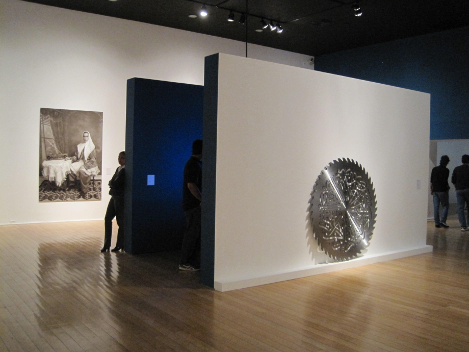 同時に世界的に評価の高いファトゥミの作品群の中から、ノコギリの刃にアラビア文字でコーランの一節を彫り抜いたシリーズを展示します。子供は触ってはいけないと神聖視されていたコーランを空洞化し、削ぎ落とされた断片によってさらに新しい作品も再生します。2012年に南仏トゥールーズの芸術祭で発表した、コーランを地面に投影した作品が「不敬」とみなされ(踏まないようにというサインが未設置だった)アーティスト自ら作品を撤去する事態に追い込まれましたが、ファトゥミは宗教を含め消費・イデオロギーなど様々なテーマに鋭く介入していきます。真摯に問題に向き合い、温厚な人柄で自らのアイデンティティを普遍化させていく制作姿勢が高く評価され、近年は欧米だけでなく中東圏やアジアにおいても展覧会を数多く開催しています。