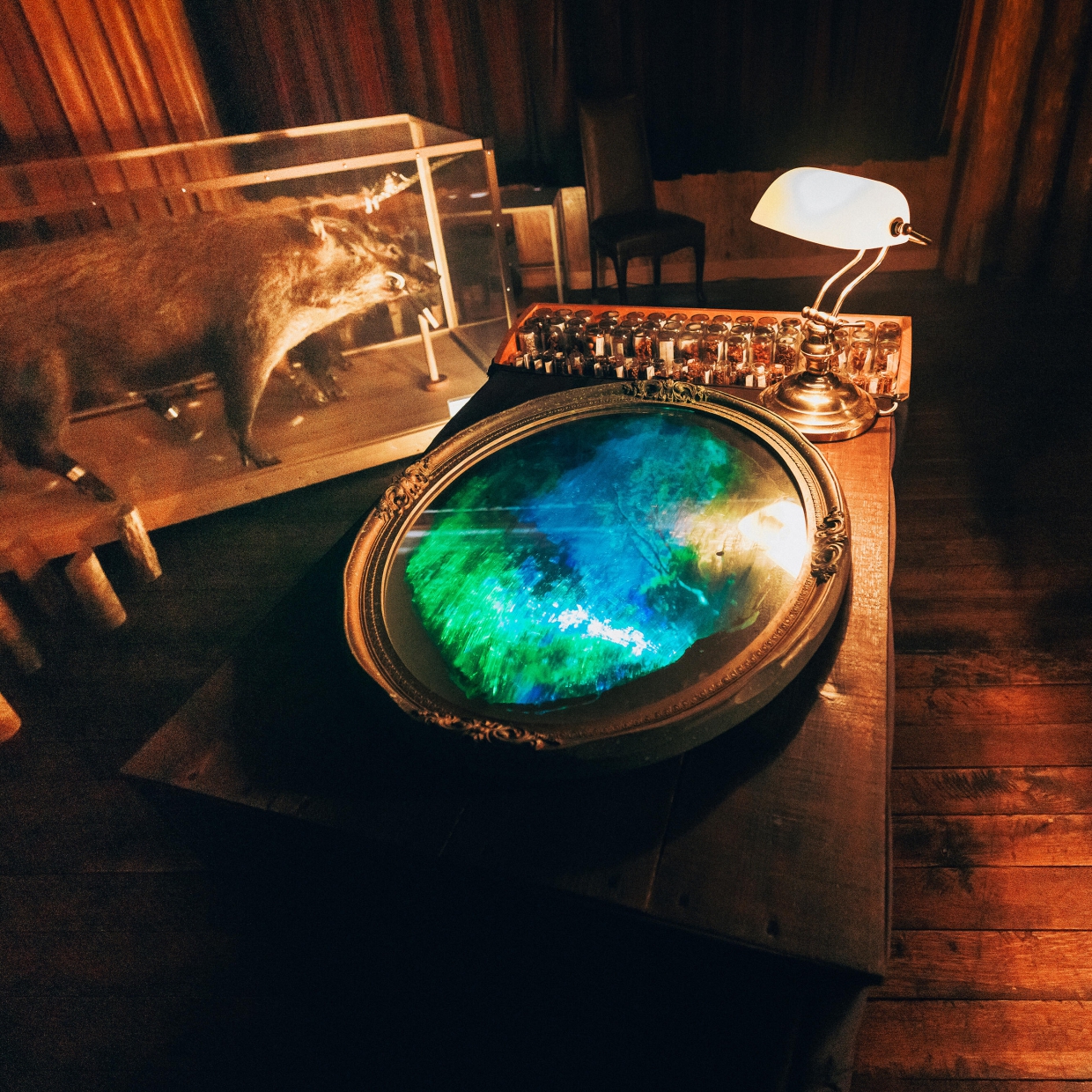 南条嘉毅はかつて土を使った絵画を描く作品を作っていましたが、芸術祭を機会に表現方法が拡張していきました。現在は、空間構成に光と音を加えた演劇性のあるインスタレーションを主にしています。本展ではインスタレーションを通して試みてきた時間表現を古い家具を用いた立体作品として発表します。