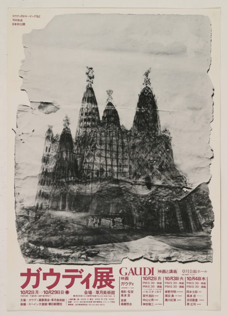 ゆりあ・ぺむぺる時代のさまざまな仕事は、フラムさんの義兄である建築家・原広司さんのご縁に大きな恩恵を受けています。原さんのお施主だったグラフィックデザイナーの粟津潔さんは、私たちに文楽「桜姫東文章」のポスターと舞台美術を依頼してくださり、その後もいろいろとご一緒させていただきました。ガウディ展の全国巡回も粟津さんがきっかけです。