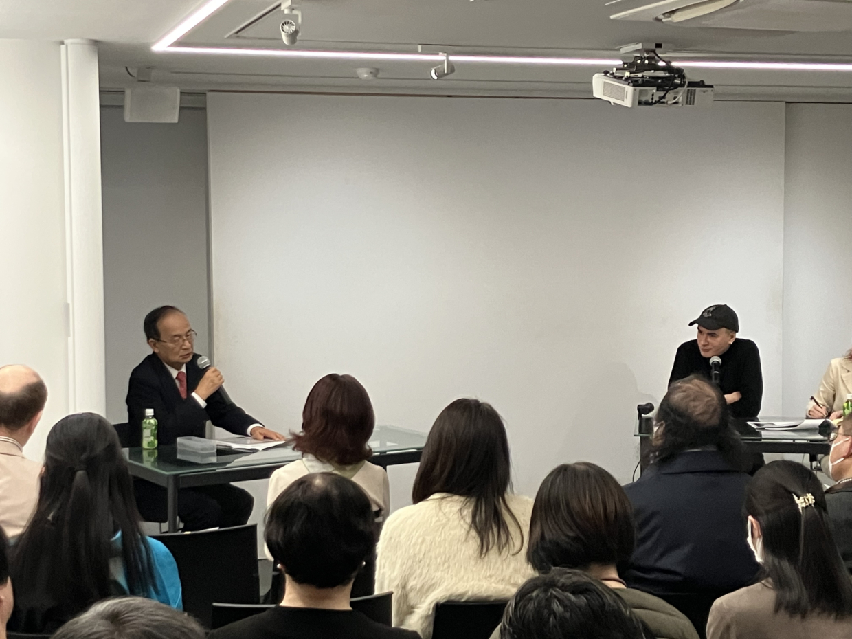 「ニキータさんに関わってもらう際には出国の問題などデリケートな問題がたくさんありました。ニキータさんは今の状況で自分の使命ややらないといけないことをやっていて、もはや歴史に対してどう動くかという立場で活動しています。今日は外国関係者や政府関係者も集まっていますが、普段はこのようなデリケートなことは話さないようにしているかもしれません。多様な意味で日本も壊滅的な状況になってきていますが、今日この場で展示とイベントが実現し、みなさんが集まっていることに大きな意味があります。ニキータさんのアートを通して多くのことを知ることができました。このような状況の中で個人の持つ思想や資質がどれだけ大切になってきているかが分かります。このような縁をありがたく思います。」